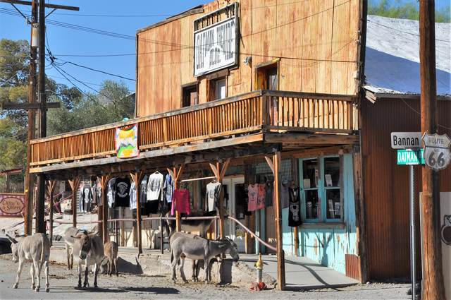 Direction la mythique Route 66. Arrêt obligatoire à Amboy pour faire le plein et admirer les vestiges du fameux Roy's Motel, qui n'est plus en activité. Vous remonterez la '66' vers le désert de Mojave, avant de franchir le Colorado à Needles puis de prendre la direction d'Oatman, une ancienne petite ville minière, aujourd'hui reconvertie en lieu de passage incontournable pour les pèlerins de la Mother Road... Vous y croiserez des ânes (qui règnent en maîtres sur le bourg), et peut-être une reconstitution d'un duel dans la rue principale... Poursuite de votre périple et arrivée à Kingman sur la Rte 66.