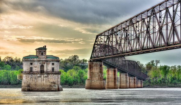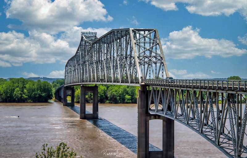 L'itinéraire prend la direction du Chain of Rocks Bridge. Edifié en 1936 et long de plus de 1.600m (avec un angle de 22° au milieu !), il reste l'un des vestiges les plus emblématiques de la Rte 66, même si l'on n'y roule plus aujourd'hui.