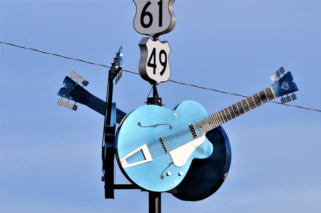Arrivée à Clarksdale, considérée par certains comme le véritable berceau du blues. Nombreux sont les musiciens qui y sont nés, qui y ont vécu ou qui y sont simplement passés. Visitez le Delta Blues Museum (installé dans une ancienne gare), qui rend un bel hommage à tous ces 'grands', et ne manquez pas la révérence au deux guitares qui trônent au beau milieu du 'Crossroads'...