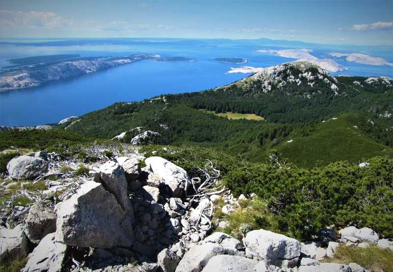 Vous rejoignez le sud de l'île, pour une courte traversée d'env. 20' (payant : env. 35 KN ou 5€ par moto), qui vous ramènera sur le continent, à Stinica. Avant de prendre la direction de Plitvice, ne manquez pas le détour par le parc national du Velebit Septentrional. Tout au sommet, laissez les bécanes pour une courte marche de 500m env. jusqu'au superbe point de vue de Buljma, qui embrasse l'Adriatique et les îles de Rab et Pag côté ouest, et les sommets et landes du Velebit côtés est et nord, du haut de ses 1.450m.