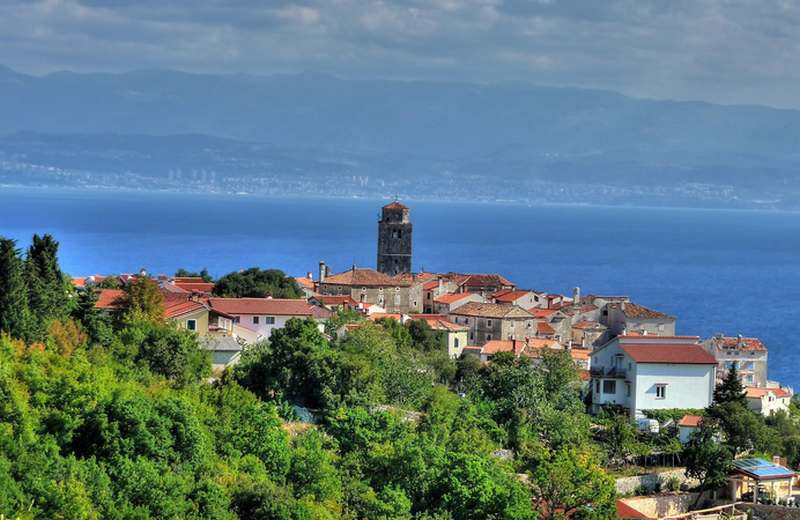 Avant de rejoindre la côte sud de l'Istrie, cap à l'est. Vous longez le lac de Butoniga par une route étroite, avant d'atteindre Buzet, capitale de la truffe. Puis, Hum, autoproclamée 'plus petite ville du monde', avec sa douzaine de maisons, ses boutiques, ses remparts et son campanile. Vous entamez votre descente vers la côte, que vous atteindrez après l'isthme de Plovin, avant d'embarquer à Brestova, pour une courte traversée (20') vers l'île de Cres (payant : env. 40 KN ou 5€ par moto).