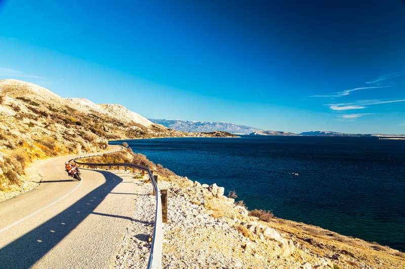 On vous conseille vivement le détour par le sud-ouest de l'île pour rider la superbe route de corniche qui relie Punat au petit village de pêcheurs de Stara Baska, et qui offre de splendides vues sur l'île de Rab, entre autres. Remontez par la ville de Krk et par Malinska, si vous n'y avez pas logé. Vous quittez l'île par le double pont en arcades et contournez la grande ville de Rijeka via l'autoroute.