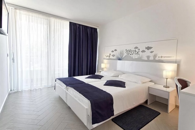 L'établissement : un grand resort de classe niché dans un magnifique cadre luxuriant, avec vue sur mer. A distance de marche de la vieille ville classée de Rab. Services au top ! Spa (payant), fitness, cours de yoga, supérette, restaurant, bar, 2 belles et grandes piscines extérieures (en saison), terrasse, jardin, courts de tennis, tennis de table, ascenseur, ATM, réception 24h/24, concierge, bagagerie... Superbe petit déjeuner inclus. Parking public gratuit.