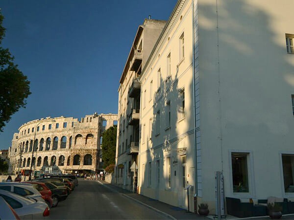 Un petit hôtel sympa. Situation idéale, à côté de l'Amphithéâtre romain, aux portes de la vieille ville de Pula. Restaurant, café, snack-deli, bar, terrasse, jardin, service navettes, réception 24h/24, ATM, concierge... Petit déjeuner inclus. Parking privé payant.