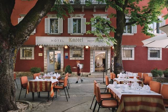 Un petit hôtel très sympa, situé dans l'enceinte du village de Motovun, sur une petite place. Restaurant, bar, piscine couverte, jacuzzi, spa (payant), sauna, hammam, bibliothèque, ascenseur, terrasse, jardin avec vue, service navettes, réception 24h/24, concierge, bagagerie... Petit déjeuner inclus. Parking privé gratuit.