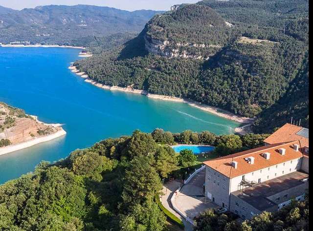 Petit hôtel situé dans un bâtiment classé, isolé face au lac de Pantà de Sau. Une superbe adresse au calme absolu, dans un paysage somptueux. Restaurant, bar, jardin & terrasse, piscine extérieure, boutique, réception 24h/24. Parking extérieur gratuit. Petit déjeuner inclus.