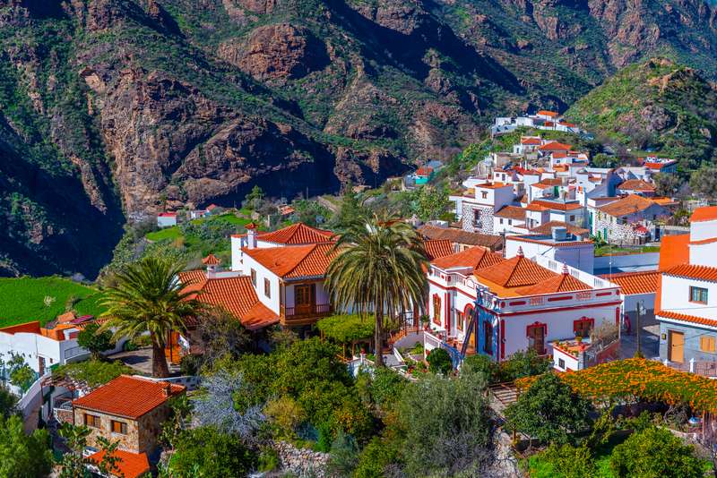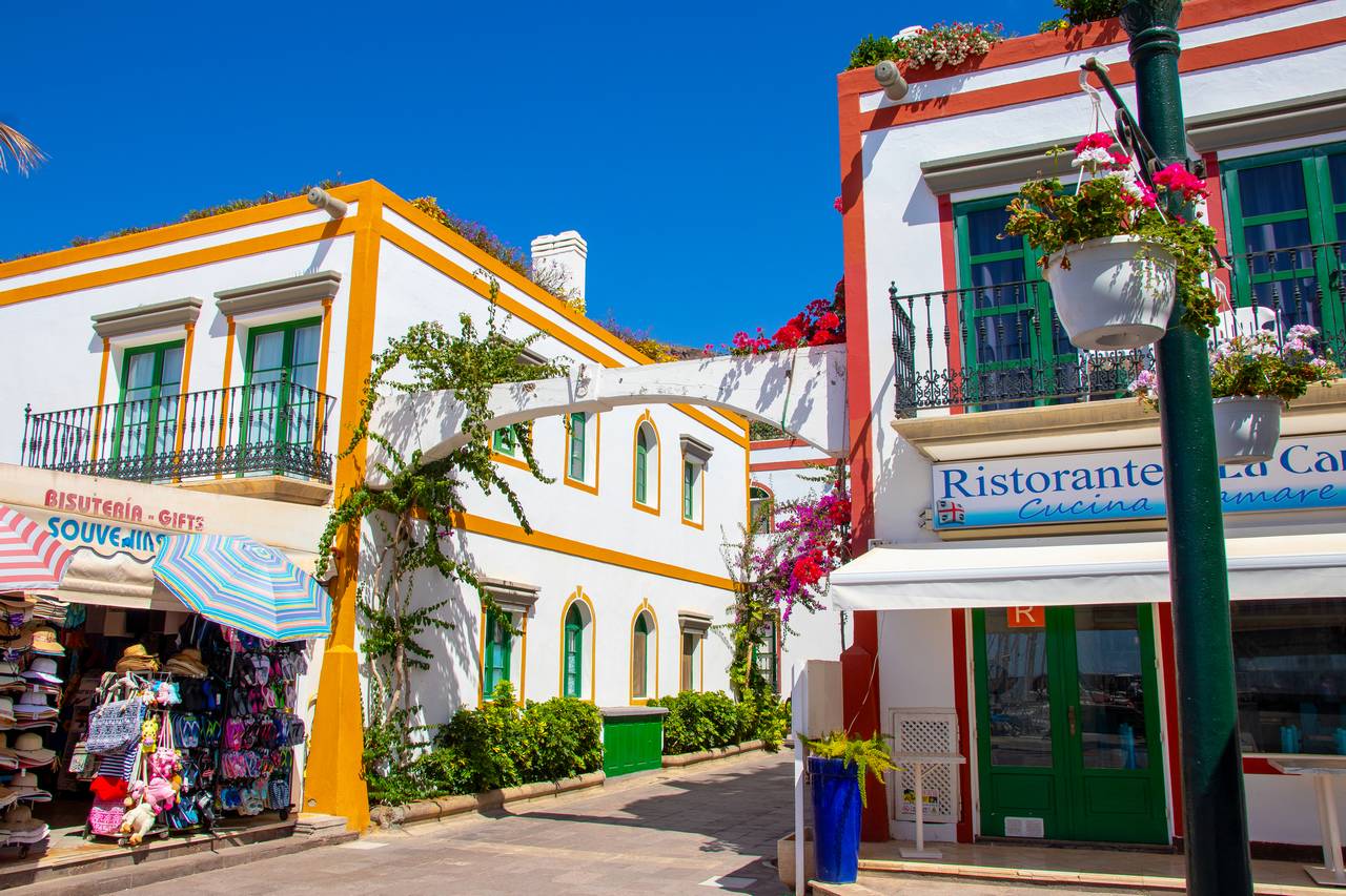 Puerto de Mogan est un adorable village, avec ses rues bordées de maisons blanches, colorées de jaune, de bleu et de vert. Des bougainvilliers en fleur y ornent les balcons.