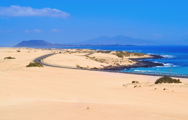 Petit déjeuner inclus à l'hôtel. Briefing et route vers Playa Blanca. Traversée en ferry (30' env.) vers Corralejo, sur la côte nord de Fuerteventura.