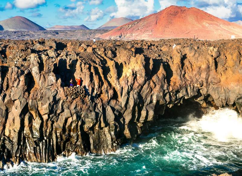 Cap sur le parc national de Timanfaya, les Montagnes de Feu de Lanzarote... S'il n'y avait pas le ciel bleu azur en arrière-plan, on pourrait se croire sur Mars ! Volcans et champs de laves vierges composent le paysage absolument incroyable de ce parc de 5.000 hectares. Pour l'heure, ni l'homme, ni le climat n'ont altéré la beauté pure de cette terre rouge et jais, classée réserve de la biosphère de l'UNESCO.