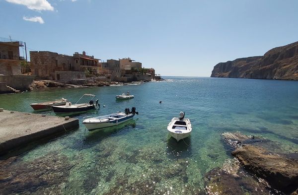 Vous longez la côte orientale de la péninsule pour rejoindre le Cap Teneron, extrémité méridionale du 'doigt' (et de l'Europe continentale !). Tout au sud, là ou la côte ouest n'est plus qu'à un jet de pierre de sa voisine de l'est, vous atteignez votre destination pour les 2 prochaines nuitées, le petit village isolé et la plage de Marmari.