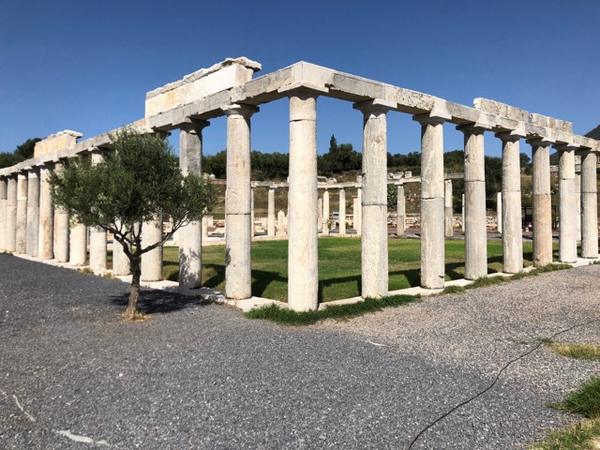 Petit déj. inclus. Cap au nord-ouest sur Messène, que vous atteindrez après un passage par le petit village de Trikorfo, où les passionnés d'aviation pourront admirer un vieux F-104 des forces aériennes grecques, étonnamment perdu au beau milieu de ce petit village isolé. L'ancienne Messène est un des points forts du voyage, tant il est difficile de rester de marbre face à la beauté de ce site archéologique, à la situation unique. Et relativement peu fréquenté, contrairement à celui d'Olympie. Les restaurations entreprises sont titanesques et bluffantes !