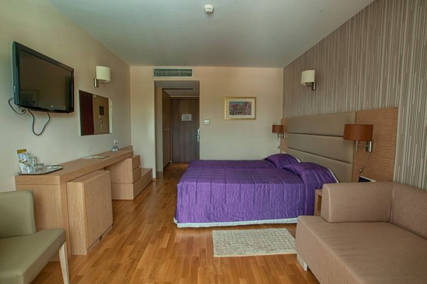 Un grand hôtel moderne avec tout le confort, situé en bord de plage (route à traverser). Piscine extérieure, restaurant, bar, pool-bar, courts de tennis,  bar-salon, jardin, terrasse en rooftop, réception 24h/24, concierge, laverie, bagagerie. Parking gratuit.